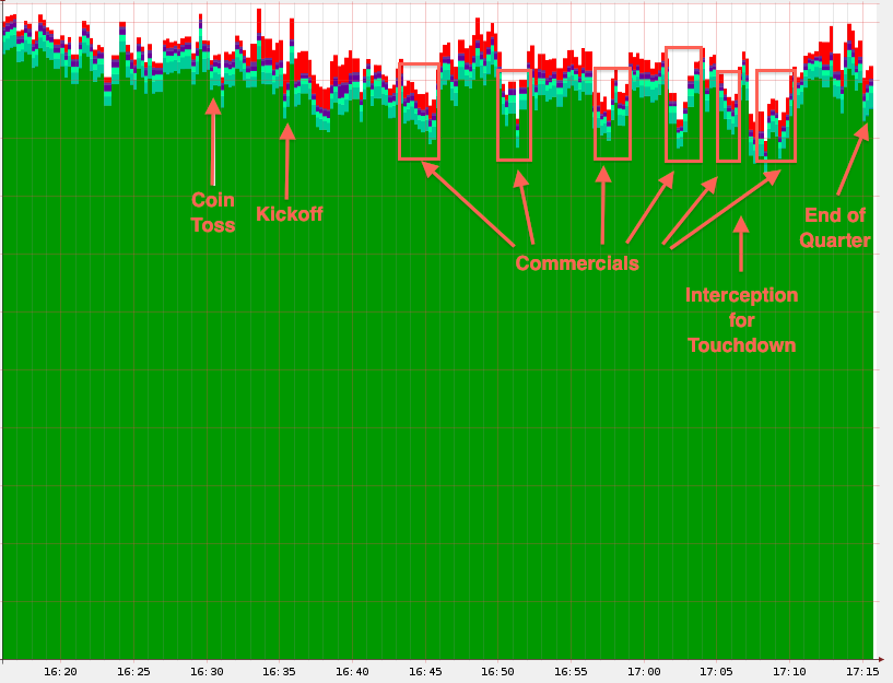 Wie man erkennen kann ist der Traffic in der Werbepause niedriger, also sind die Leute nicht am “reddit-tieren”. Während des Spiels sind sie aber eifrieg dabei. Was auch immer die da machen…..